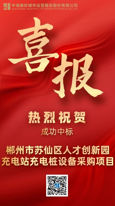 近日,公司旗下美好京能公司成功中标郴州市苏仙区人才创新园充电站充电桩设备采购项目。本次中标项目主要为客户提供新能源充电桩产品、运营管理平台及配套安装服务。