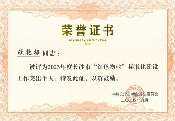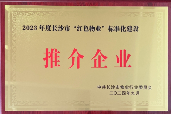 12月11日,长沙市住建局召开“红色物业”建设工作推进会,现场进行“红色物业”标准化建设表彰。公司荣获2023年度沙市“红色物业”标准化建设推介企业,申奥美域项目荣获2023年度长沙市“红色物业”标准化建设推介项目,欧艳梅同志荣获2023年度长沙市“红色物业”标准化建设工作突出个人。