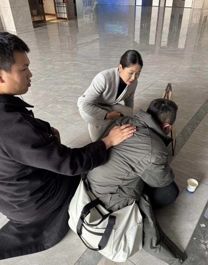 客服主管李佳佳跪地安抚患者
