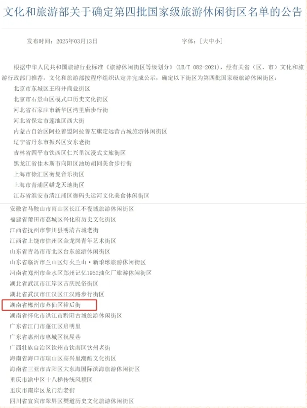 文化和旅游部关于确定第四批国家级旅游休闲街区名单的公告