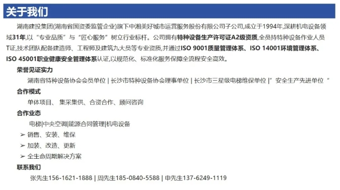 交流期间,公司向到访嘉宾系统介绍了湖南省电梯有限公司的发展历程、技术资质及“全生命周期服务”体系——湖南省电梯有限公司依托湖南建投集团平台资源与31年专业积淀,已构建‘技术+服务+供应链’立体化竞争力,期待与世界级电梯企业携手打造行业合作新范式。