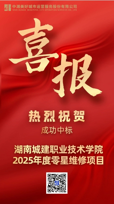 春日传捷报,奋进正当时!中湘美好修缮分公司成功中标湖南城建职业技术学院2025年度零星维修项目。此次携手湖南省示范性(骨干)高职院校,标志着公司在教育民生工程领域再树标杆!