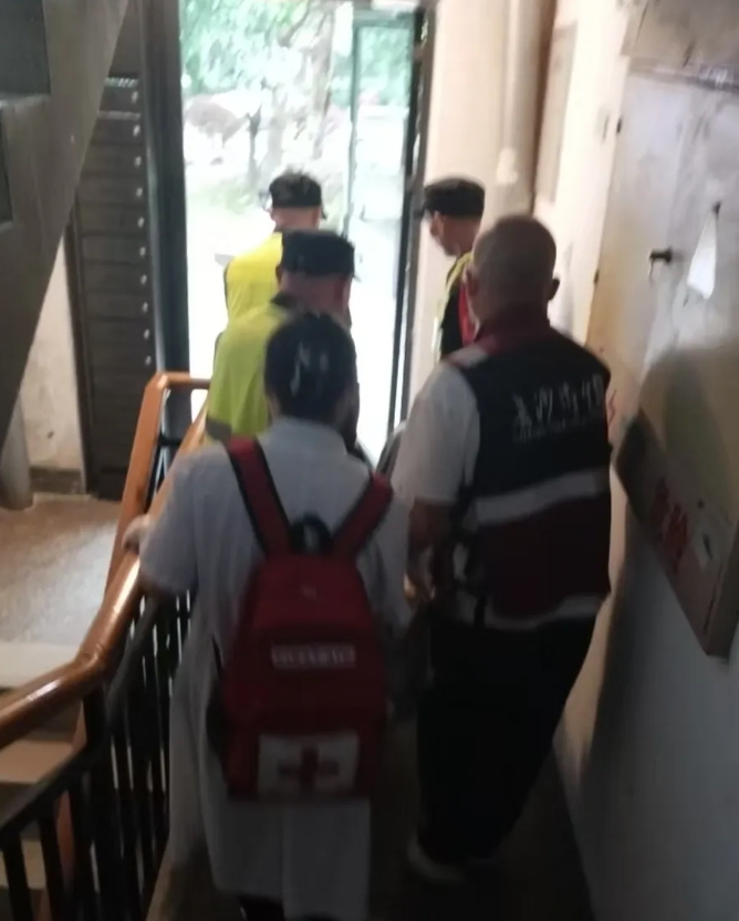 经得家属和医护人员许可后,工作人员迅速行动起来。“大家动作轻点、稳点!”周班长反复叮嘱。大家分工协作、配合默契,有的负责在前面开路,有的紧紧护住业主的身体,确保每一个动作都轻柔而平稳,避免造成二次伤害,还有的在后面用力支撑。从楼上到救护车,一层一层又一层的楼梯,每一步都仿佛在针尖上赛跑。大家喊着整齐的口号,步伐慎重却坚定,额头上布满了豆大的汗珠,后背的衣衫早已被汗水湿透,双手始终紧紧地托举着业主,眼神中透露出坚定和执着。终于,在大家的齐心协力下,业主安全地上了救护车。