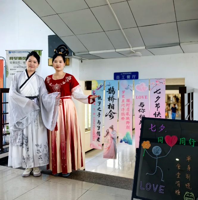 “好有创意啊,感受到了食堂的温暖和用心!”大家好评如潮,纷纷点赞,“没想到在食堂还能过七夕,很有仪式感,冰粉也很美味。”“扮演‘牛郎’‘织女’的同事太可爱了,氛围特别好。”