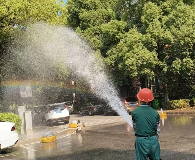 工程部提前对小区高压水泵、供水管网开展全面“体检”,额外增设2台备用泵,安排人员24小时在岗值守。截至目前,所有供水设备零故障运行,水压稳定充足,为整场抗旱保绿战筑牢“水脉生命线”。