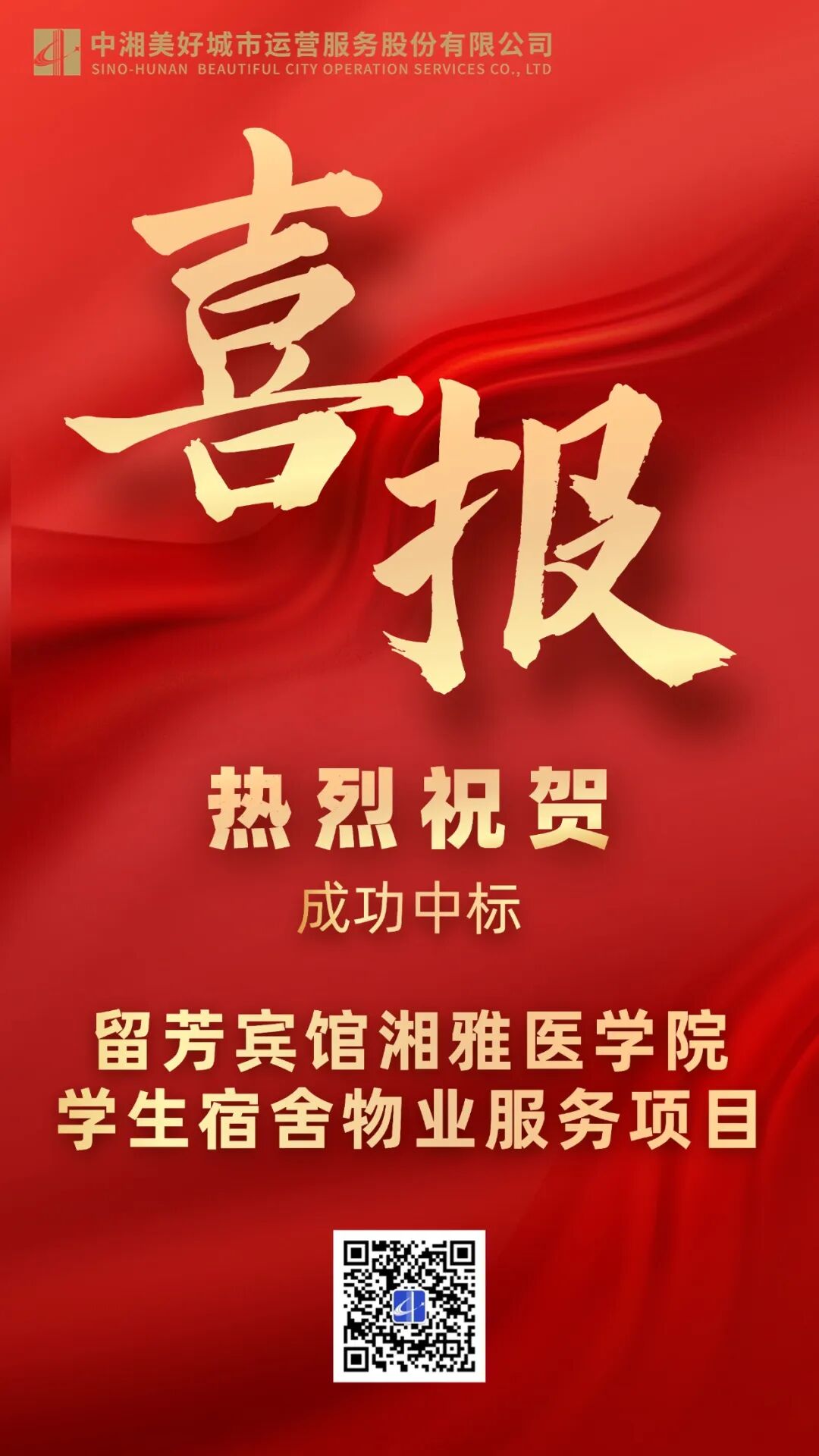 国庆中秋双节同庆之际,中湘美好再添捷报——成功中标2025年-2028年留芳宾馆湘雅医学院学生宿舍物业服务项目。这份成果既是市场对中湘美好的认可,更是我们以专业献礼家国的生动注脚。
